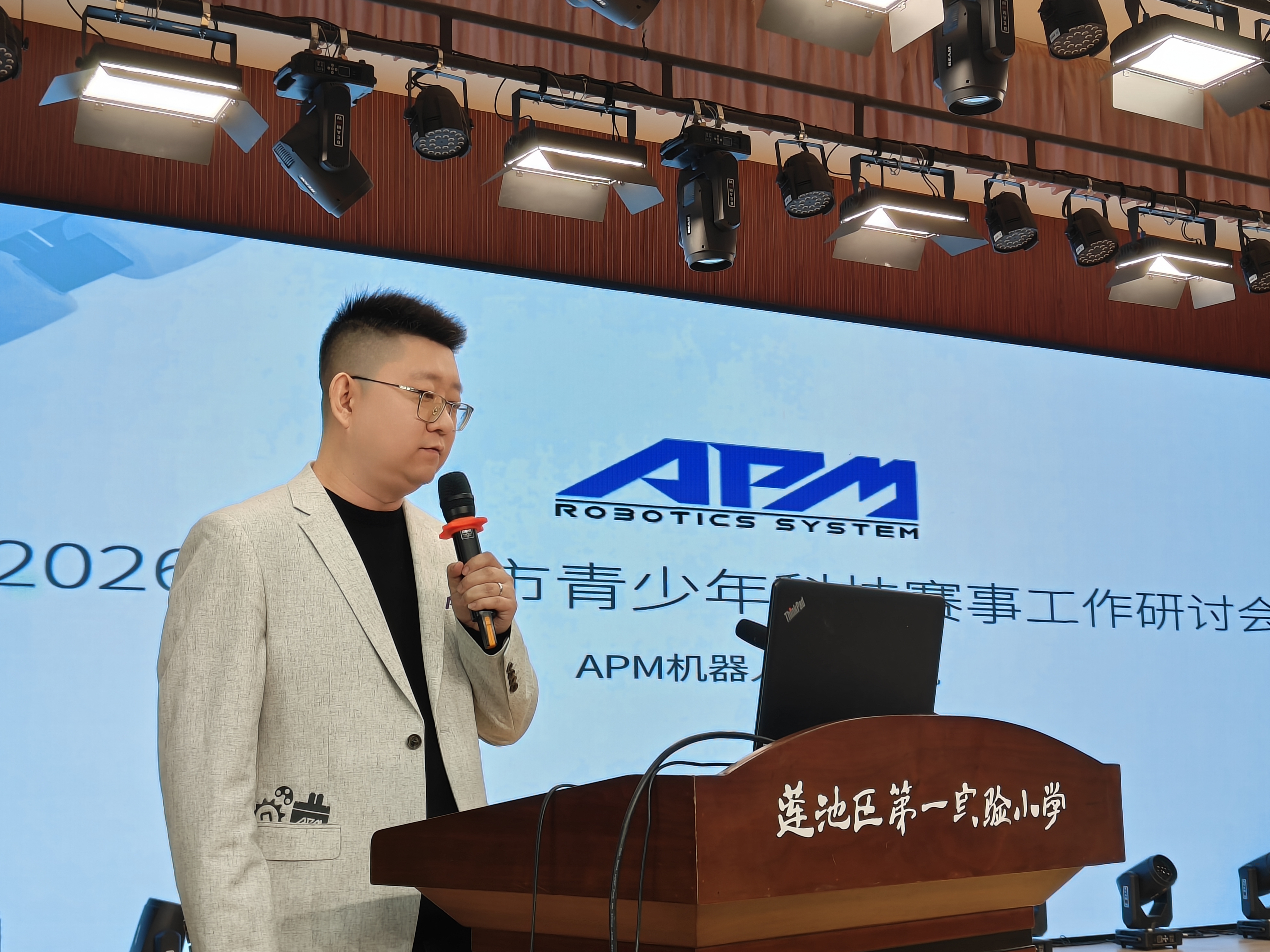 APM 教育机器人冀西北负责人杨洋,介绍机器人赛事体系与科创教育融合方案,拓展青少年科技赛事的视野。